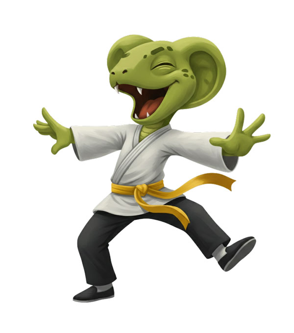 Snake ist eine humanoide Schlange und unser Spezialist für Spaß, Bewegung und Kreativität.